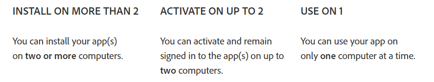I’m a student, have a typical CC subscription with all 45 of the programs that can be activated on two computers (not at the same time). If I wanted a third computer to have just Adobe PS at the student price, that can be opened simultaneously, is that even possible? I checked my Adobe account settings and didn’t see any option like this.