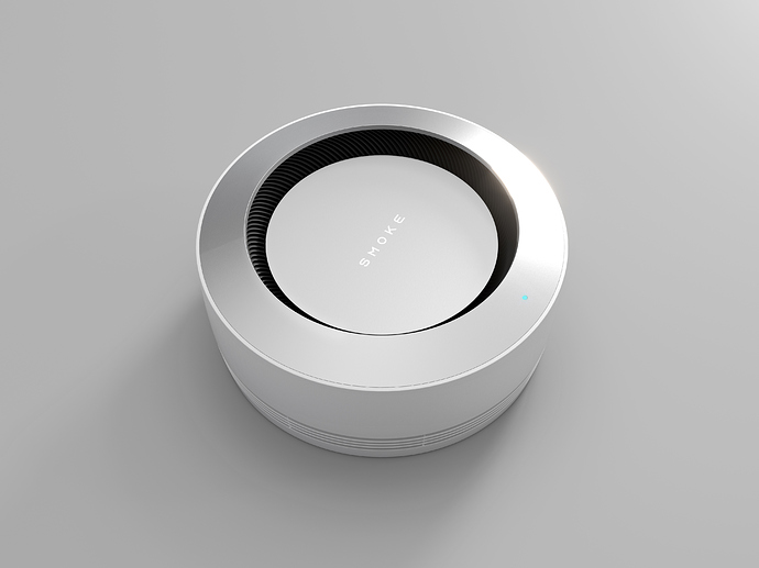 The design and renderings look nice, but I’d question the black ring. My hunch is that most consumers want their smoke detector to blend in rather than stand out. The black ring, while it looks cool in the renderings, makes it stand out.