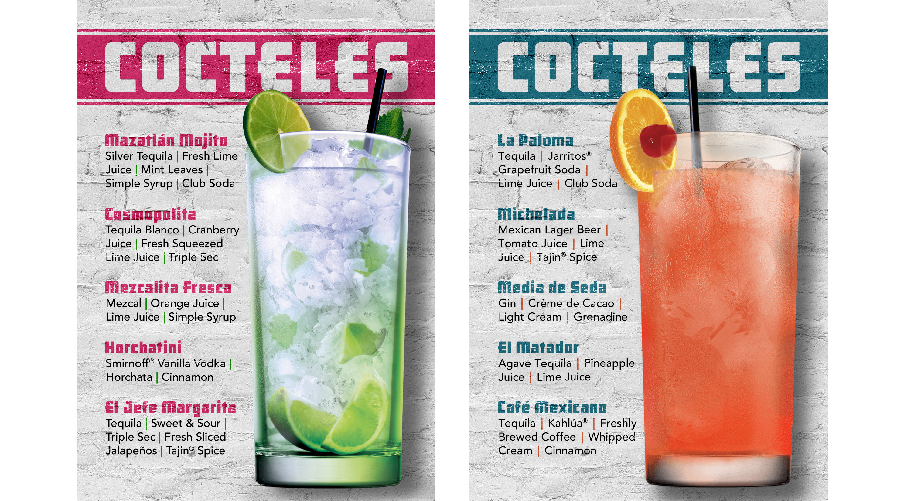 I was going for the typography and advertising you see painted on walls in Mexico, but I felt the lettering was still a little too crude and rough. I wanted just a hint of elegance. Not to mention, I feel like the heading and drink names just looked “typed” over the background despite the blending.