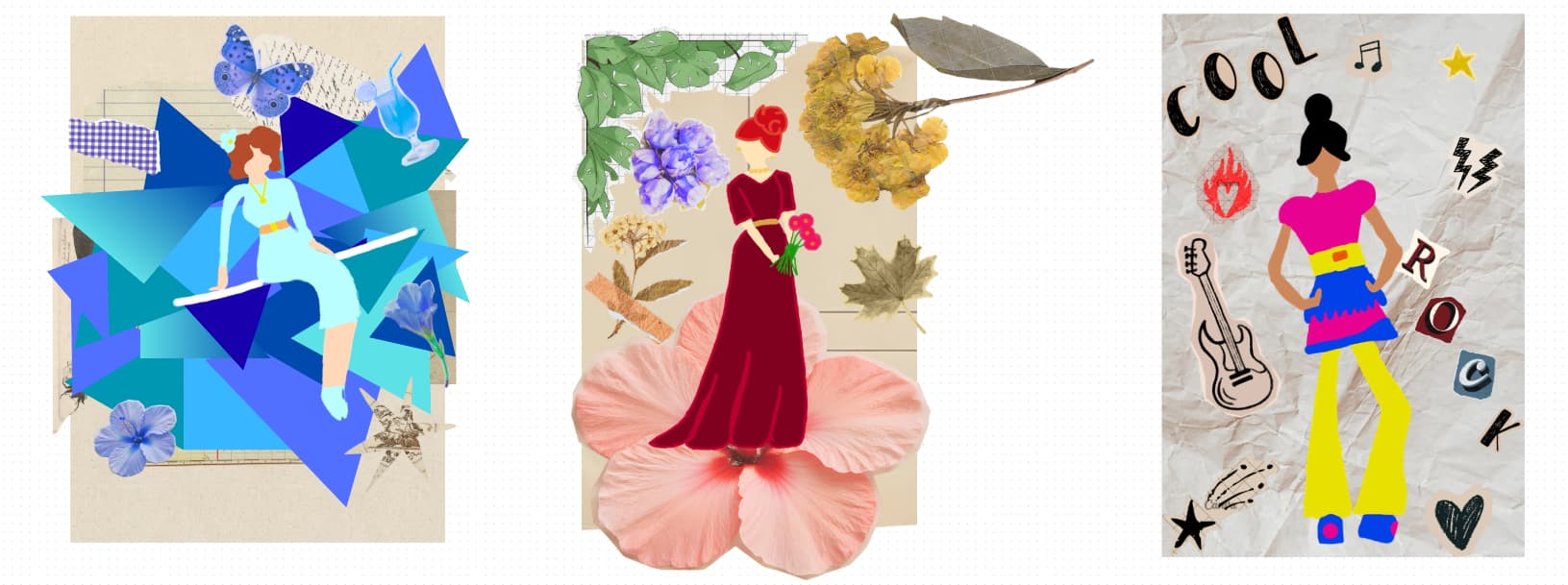 Hi guys I’m doing a practise/educational design brief which says to do a fashion poster (three) in collage/scrapbook format. Do you think each meets the brief? Any feedback/suggestions?