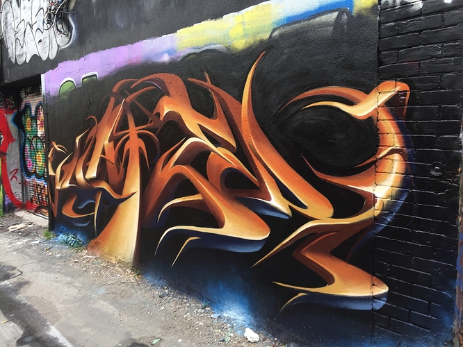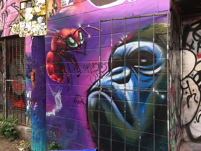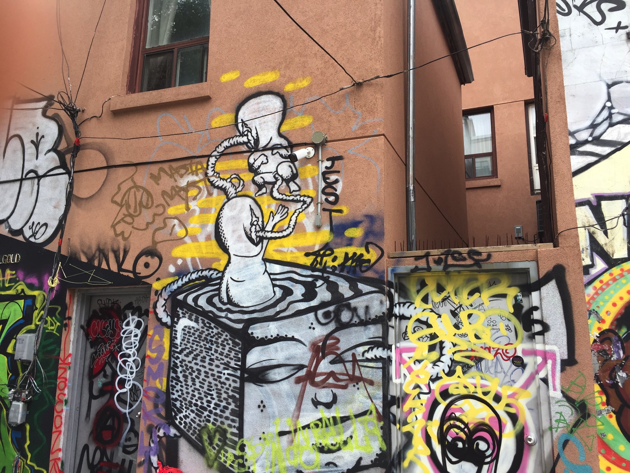 The Graffiti Alley is located in Toronto, Canada, south of Queen Street West near Bathurst Street. Here are a few pics I took yesterday for your inspiration. Some of these have been created by famous artists.