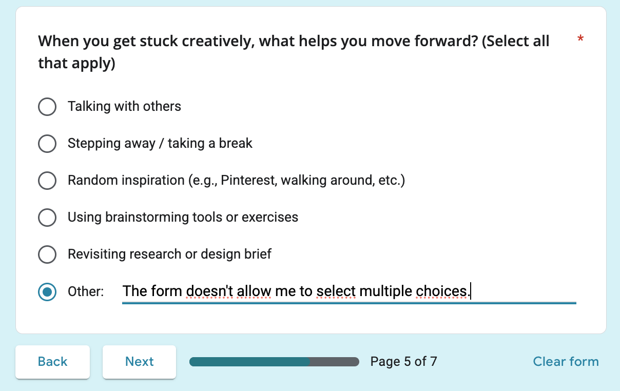 I’m running a short survey to learn how people approach design prompts, constraints, and brainstorming. While it’s especially aimed at early-year design students, I’d love to hear from experienced designers as well — your insights will help shape how accessible and useful this toolkit becomes.