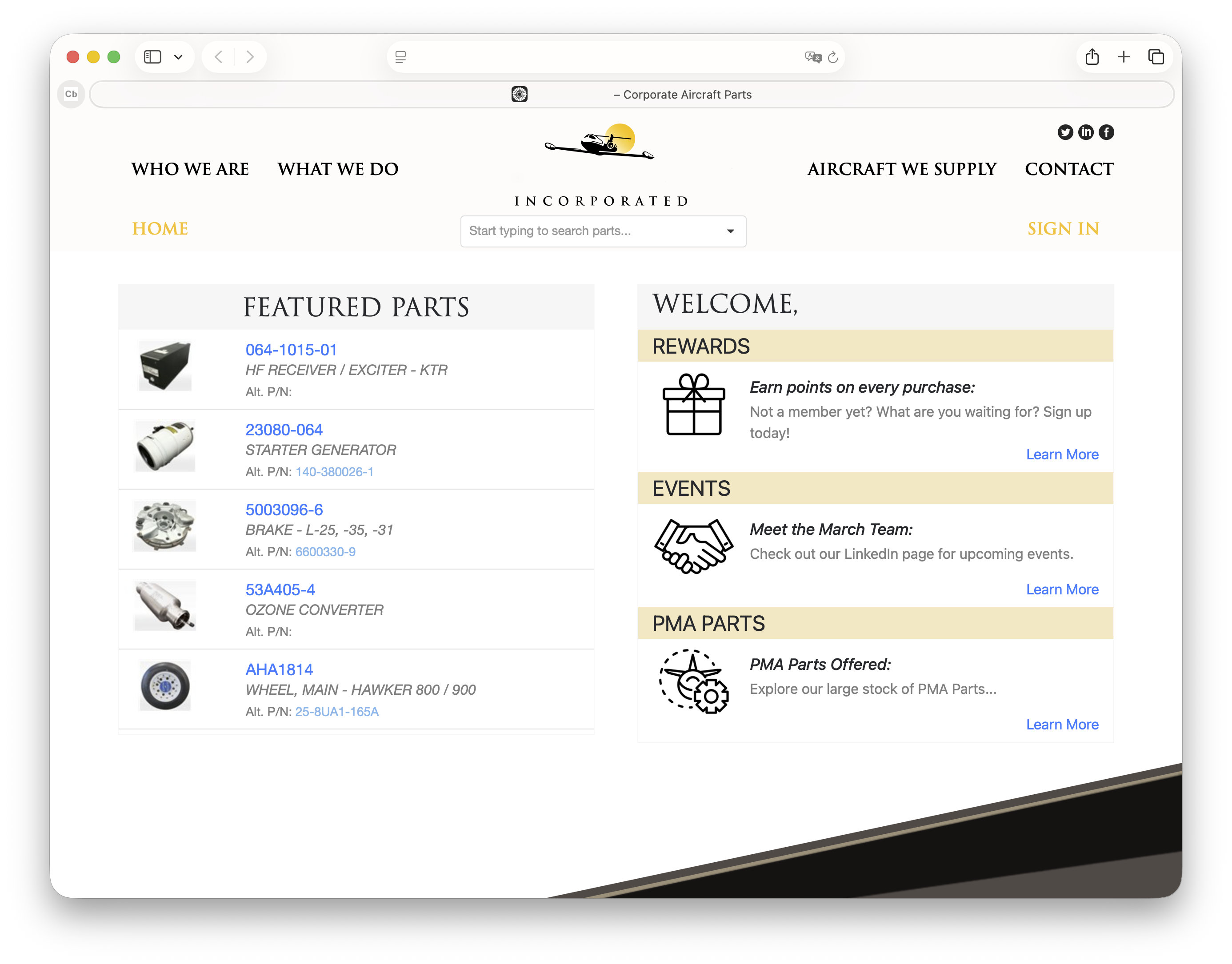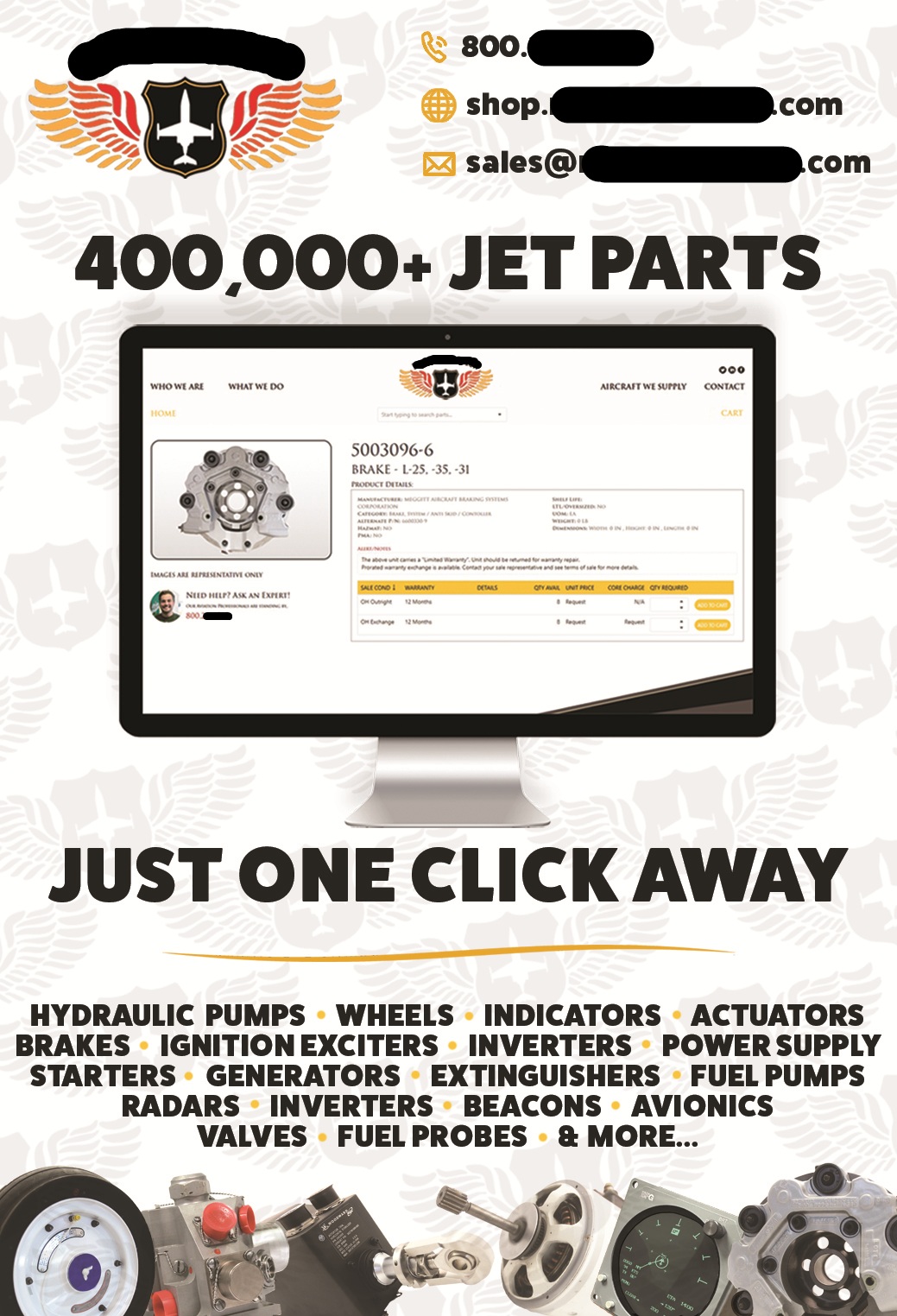 The primary visual â or the thing my eye goes to first â is the monitor with the website. Who cares? Every business has a website. Thatâs not what youâre selling. Youâre selling the convenience of having easy access to 400,000+ jet parts. That should be what the reader sees first, and you have it sort of buried on the page.