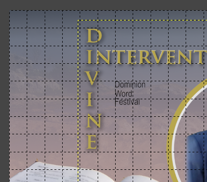I did use a grid and i did experiment w/the intervention elongated (like how divine is now) but it ended up being too long for everything to fit. I did try just a solid outline of white, gold, and black with either word but I wasn’t fond of it, it seemed too wonky so I figured this was the best display.