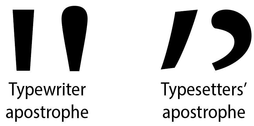 The other kind are typesetters’ apostrophes and quote marks. (They’re also called curly quotes or printers’ quotes, among other names, but they’re always slanted and sometimes curly).