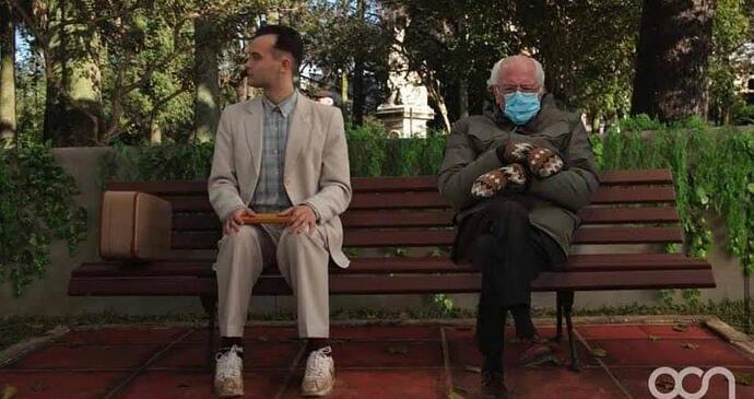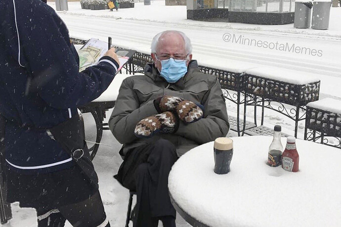 This one is cracking me up. Bernie came in a very sensible outfit yesterday and Iβm sure he was warmer than anyone else there.